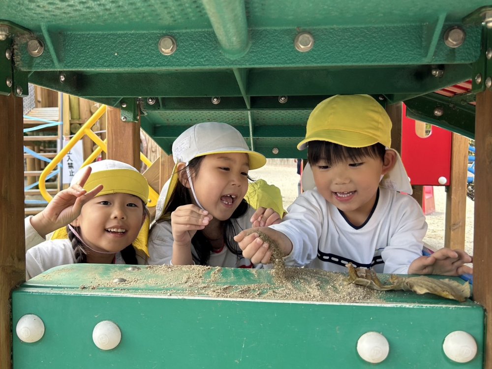 最近のブームはバナナ鬼ごっこと遊具の下でのお店屋さんごっこです😊
