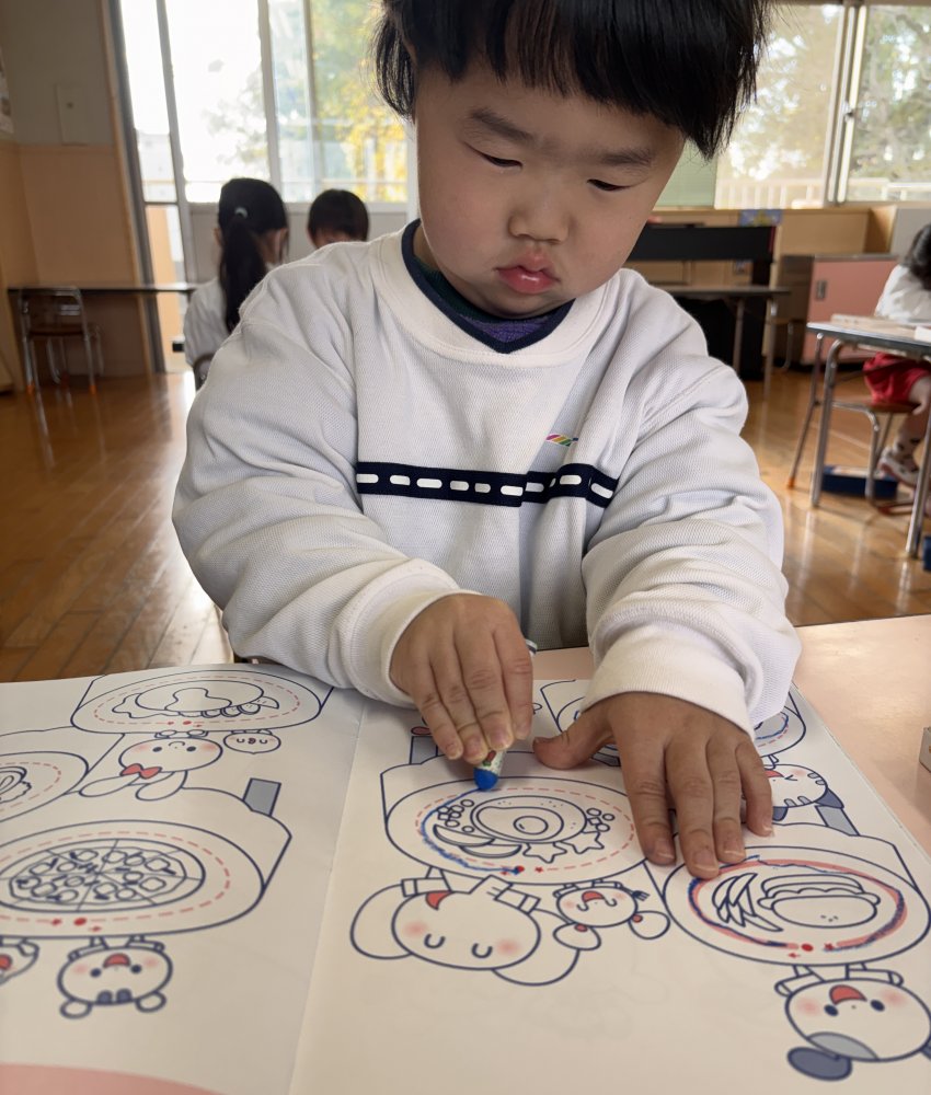 左手はワークをしっかりと押さえて、「はみださないように」と声に出しながら、楽しく書いていました☆彡