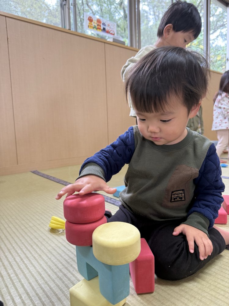 真剣な表情で、崩さないように工夫しながら取り組んでいます○△□
