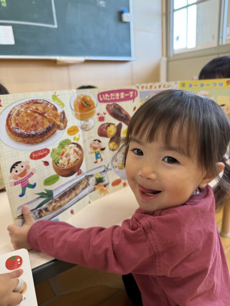おいしそうな食べ物の絵を見て、パクパクと食べる真似をする姿も見られました。🍕🍮