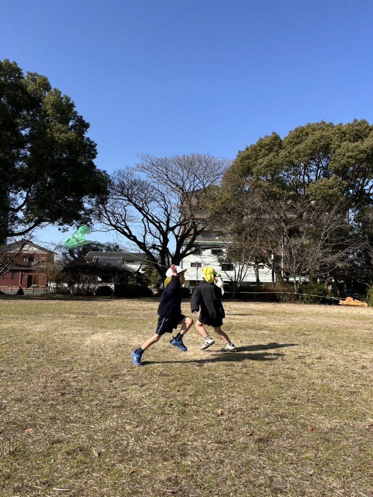 「みてみて~!!」と、自分で絵を描いた凧をとばそうと、駆け回る子ども達です✨寒さも吹き飛びます😆