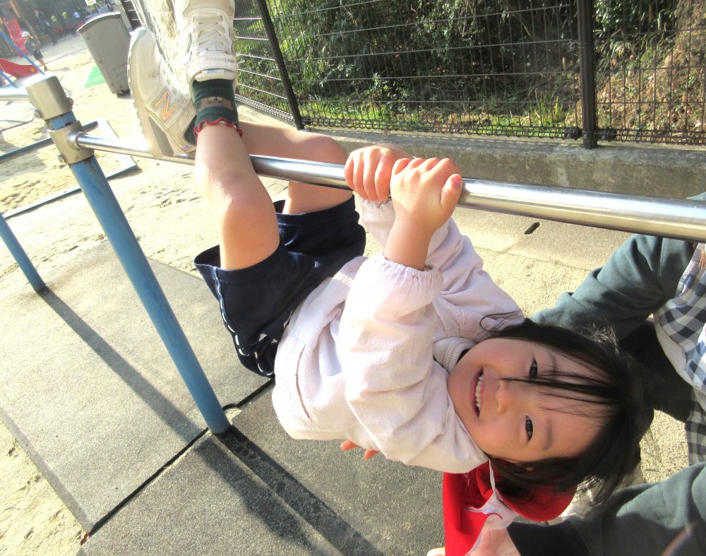 しっかり準備運動をして、まずはぶら下がり、みんなで数えて「1・2・3・・・9・10!」頑張ったよ😊