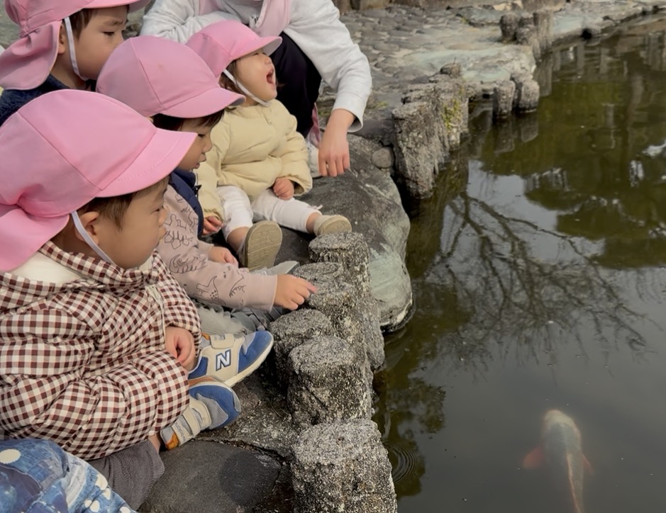 ゆったり泳ぐ様子をじっと見つめ、黄色の鯉を見つけると「いた!」と指さしで知らせる姿が見られ、興味の広がりを感じました🌟🐡