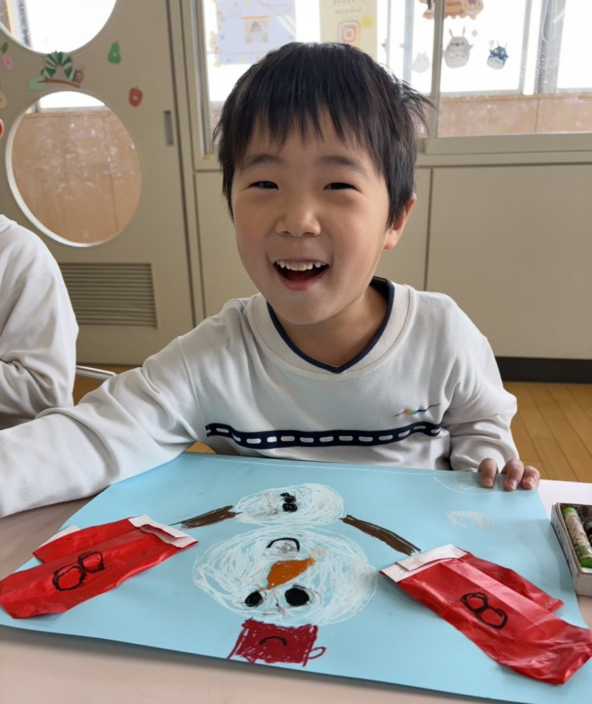 「手ぶくろつけてるのは、ゆきだるまさんにしよう!」「私の手ぶくろはハートがら💗」と楽しくおしゃべりしながら製作を楽しみました😊